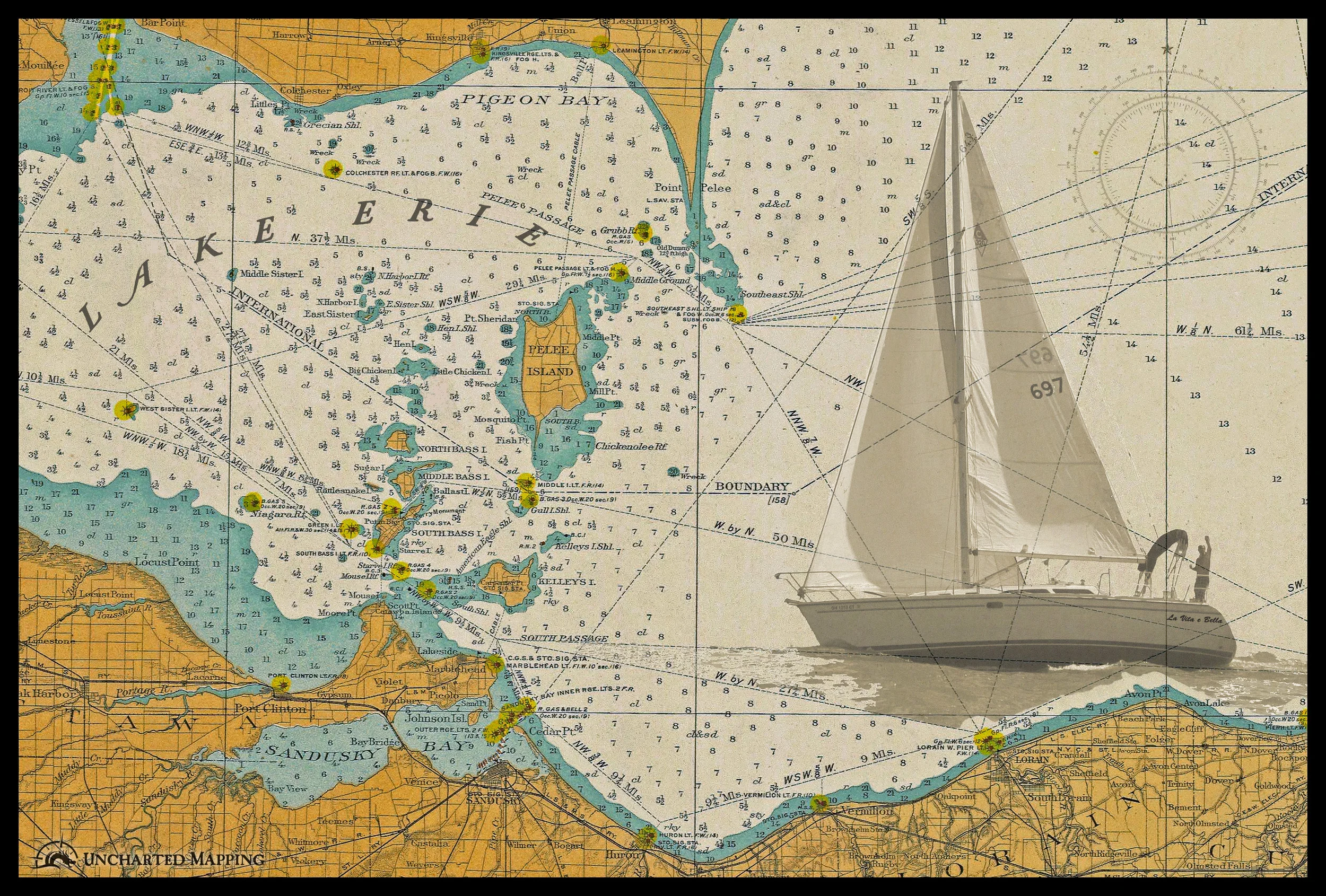 Why not use the maps and charts that inspired our adventures to capture the essence of our travels? So often these play a huge role in creating our adventures: we spend hours hunched over them planning and dreaming of the gleaming shores we’ll discover, the historic sites we’ll visit, and the time we’ll spend with new and old friends. Or they are what make a safe passage or journey possible and helped us realize a dream.